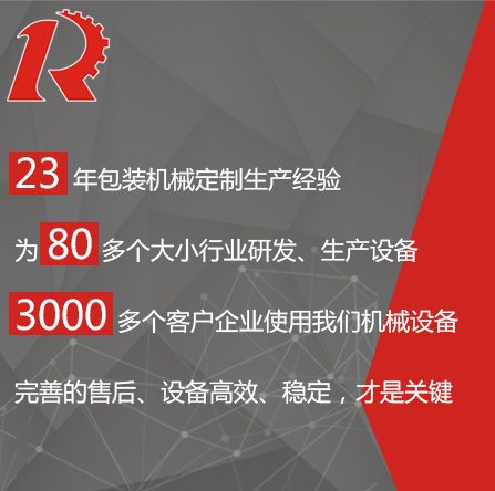 廣州市睿佳機械設(shè)備有限公司是國內(nèi)專業(yè)從事自動化包裝機械產(chǎn)品,集研發(fā)、生產(chǎn)、銷售、服務(wù)于一體的制造公司,已通過ISO9001:2008質(zhì)量體系認證,部分系列產(chǎn)品已通過歐盟CE認證。 經(jīng)過多年的發(fā)展,公司專業(yè)生產(chǎn):封尾機,灌裝機,旋蓋機,貼標機,包裝機,輸送機,噴碼機,灌裝生產(chǎn)線等機械設(shè)備。企業(yè)以開發(fā)生產(chǎn)包裝機械和訂做特殊包裝機械為主,所生產(chǎn)的包裝機械在同行和客戶中都得到一致的贊賞,以高技術(shù)和穩(wěn)定的質(zhì)量遠銷東南亞和歐美。在國內(nèi),也成為多家知名藥廠、食品廠、化妝品廠指定使用產(chǎn)品。 睿佳機械:“想客戶之所想,急客戶之所急”既是睿佳對廣大客戶的承諾也是睿佳的宗旨,睿佳將與時代同步、銳意進取,以更優(yōu)質(zhì)的服務(wù)回報廣大客戶對睿佳的信賴和支持。